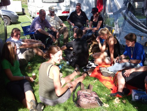 Gemütliches zusammen sitzen vorm Hotel